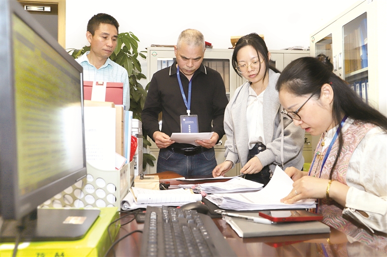 “五一”將至,浙江省金華市婺城區(qū)紀(jì)委監(jiān)委堅(jiān)守節(jié)點(diǎn),對重點(diǎn)場所、重要領(lǐng)域和關(guān)鍵環(huán)節(jié)開展監(jiān)督檢查,打好糾治“四風(fēng)”組合拳。圖為該區(qū)紀(jì)委監(jiān)委聯(lián)合審計(jì)、財政等部門對某單位“三公”經(jīng)費(fèi)使用和津補(bǔ)貼發(fā)放情況進(jìn)行抽查。樓婷 攝