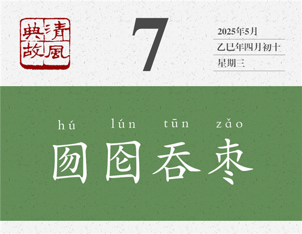 囫圇,就是完完整整的意思;把棗子完完整整地吞咽下去,就叫“囫圇吞棗”。我們常說的“囫圇吞棗”,原來是一個傻子自作聰明的“發(fā)明”。雖然完完整整地吞下了一個棗子,但嚼也不嚼,連棗核也不用吐,連棗子什么味道也不用嘗,直接就咽下去了,這是聰明之舉嗎?吃東西為什么要咀嚼,既是為了品嘗滋味、享受過程,也是為了更好地消化吸收、獲取營養(yǎng)。后世即以“囫圇吞棗”為典,比喻學(xué)習(xí)或借鑒過程中的死記硬背、照本宣科現(xiàn)象??此茡?jù)為己有了,實則只是走了個過場而已。朱自清《論詩學(xué)門徑》:“一個高中文科的學(xué)生,與其囫圇吞棗或走馬看花地讀十部詩集,不如仔仔細(xì)細(xì)地背誦三百首詩。”