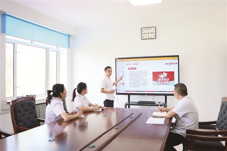 黑龍江省大興安嶺地區(qū)紀(jì)委監(jiān)委貫徹帶頭過(guò)緊日子要求,通過(guò)常態(tài)化教育機(jī)制推動(dòng)紀(jì)檢監(jiān)察干部將勤儉理念融入日常工作和生活。圖為大興安嶺地區(qū)新林區(qū)紀(jì)檢監(jiān)察干部圍繞厲行節(jié)約、反對(duì)浪費(fèi)開(kāi)展學(xué)習(xí)。王麗 攝