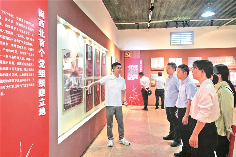 近年來,福建省泰寧縣紀委監(jiān)委運用紅色資源,通過參觀學習紅色場館、開展紅色故事宣講等方式,引導紀檢監(jiān)察干部賡續(xù)紅色血脈,傳承光榮傳統(tǒng)和優(yōu)良作風。圖為近日,該縣紀檢監(jiān)察干部到三明市沙縣區(qū)夏茂鎮(zhèn)紅色展廳開展學習。許林煒 攝