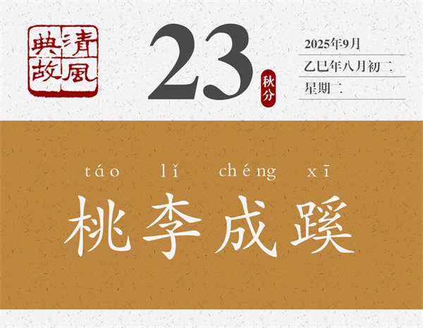 “桃李不言,下自成蹊”雖為俗語(yǔ),但與孔子的話(huà)不謀而合。不令而行者,不言而成蹊者也。“桃李不言”呼應(yīng)“不能道辭”,“下自成蹊”呼應(yīng)“皆為盡哀”。“此言雖小,可以喻大”是說(shuō),這句俗語(yǔ)雖然言淺意近,卻能用它來(lái)說(shuō)明許多大道理。后人遂以“桃李不言,下自成蹊”或“桃李成蹊”為典,比喻一個(gè)人只要品德高尚,行為端正,自然會(huì)贏(yíng)得人們的愛(ài)戴和追隨。辛棄疾詞《一剪梅·游蔣山呈葉丞相》:“多情山鳥(niǎo)不須啼。桃李不言,下自成蹊。”南朝齊人謝朓詩(shī)《和徐都曹出新亭渚詩(shī)》:“桃李成蹊徑,桑榆蔭道周。”