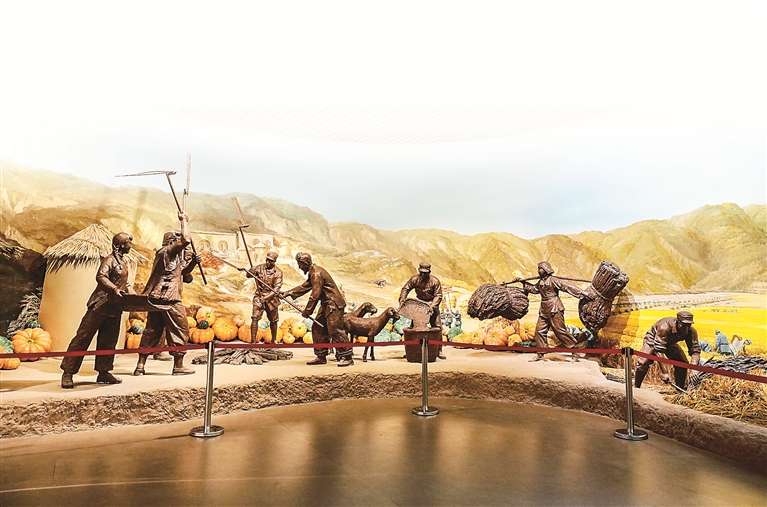 南泥灣大生產紀念館內的雕塑作品。中國共產黨領導抗日軍民自力更生、艱苦奮斗,把南泥灣變成“陜北的好江南”。新華社記者 樊雨晴 攝