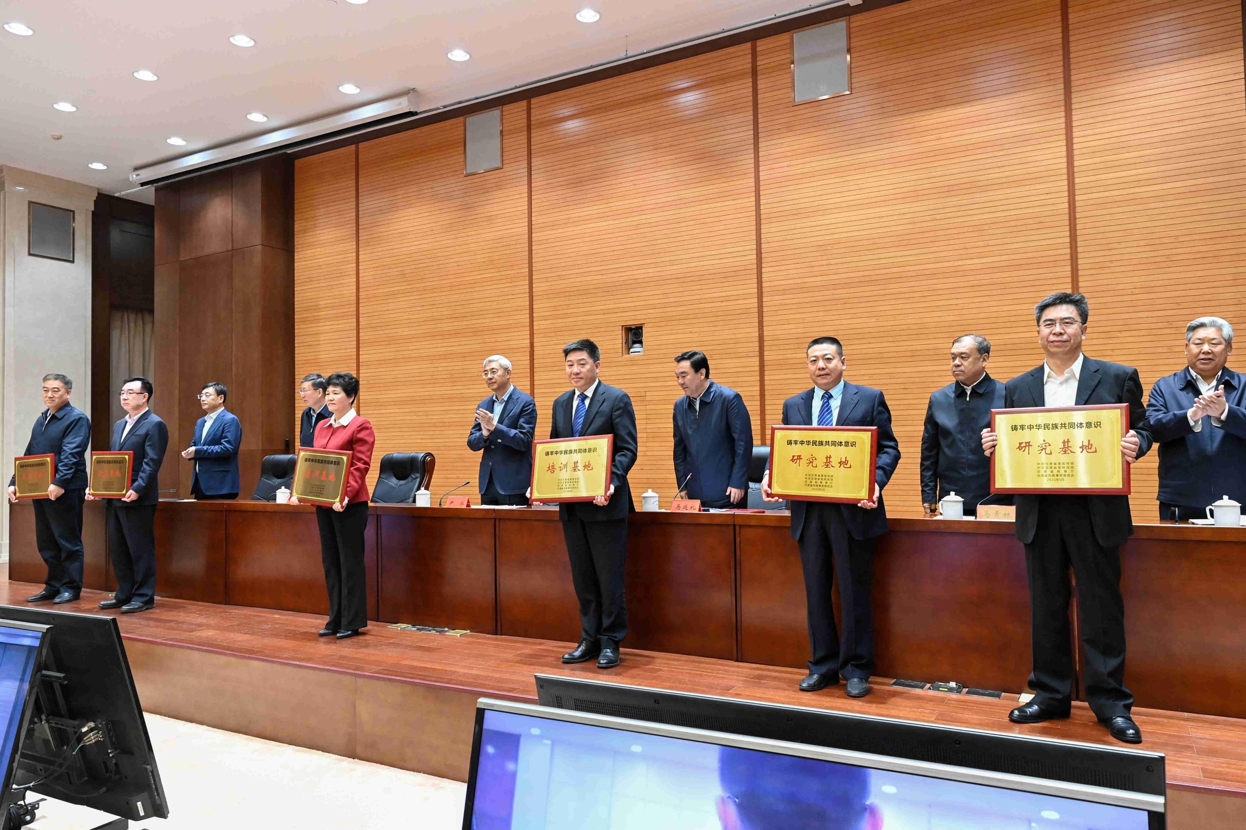 會(huì)上,為首批甘肅省鑄牢中華民族共同體意識教育基地、培訓(xùn)基地和研究基地授牌。