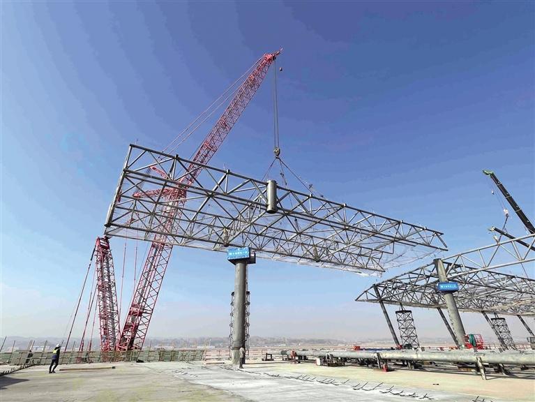 記者了解到,蘭州中川國際機場三期擴建工程新建航站樓共有A、B、C、D四條指廊,是航站樓重要組成部分,每條指廊長117米、寬90米,屋蓋投影面積20.45萬平方米,建筑面積39.73萬平方米。此次封頂的為航站樓D指廊部分,由支撐體系和屋蓋鋼桁架結構組成,形成了一個不規(guī)則的自由曲面空間,總投影面積達到了29500平方米,總重量達2800多噸。根據總體計劃,蘭州中川國際機場三期航站樓工程鋼結構將于2022年底實現全面封頂。