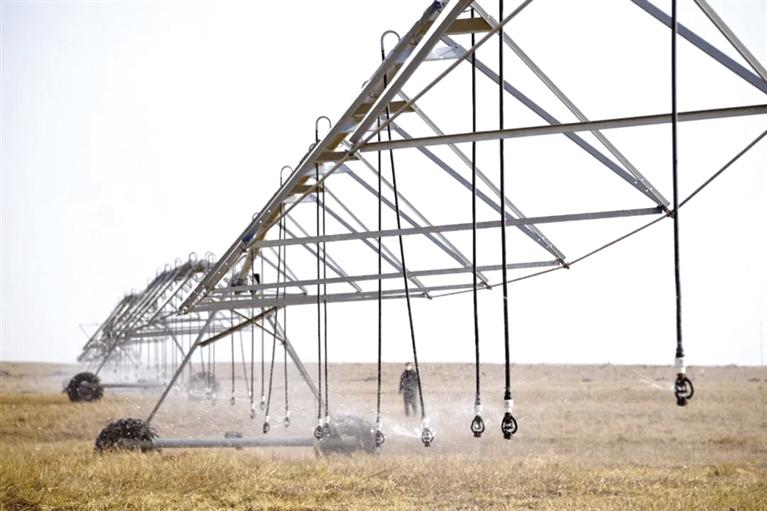在農(nóng)投集團現(xiàn)代牧草休閑示范園項目,平整一新的2.3萬畝土地上,3組大型噴灌設(shè)備已經(jīng)投入緊張的工作中,隨著工作人員啟動設(shè)備,噴灌機所過之處土地一片濕潤,空氣中充滿了泥土的清新。據(jù)現(xiàn)場負責(zé)人介紹,連續(xù)幾日,他們都在緊鑼密鼓開展春灌工作,利用大型噴灌設(shè)備,不僅實現(xiàn)了水資源的高效利用,而且減少了人力投入,工作效率更高。