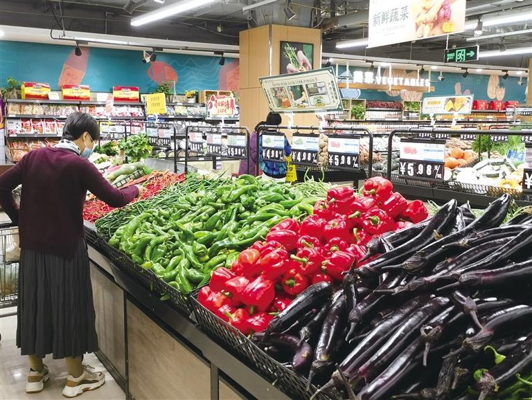 超市蔬菜、水果和肉蛋類(lèi)供應(yīng)正常儲(chǔ)備充足。 蔣凌 攝