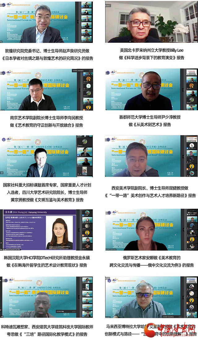 中國甘肅網(wǎng)11月16日訊 (本網(wǎng)記者 張?zhí)m琴 通訊員 王秀)推進“一帶一路”沿線國家和地區(qū)美術(shù)交流,促進美術(shù)教育的國際化合作和發(fā)展,搭建國際交流的學術(shù)平臺,“一帶一路”美術(shù)教育國際研討會14日在西北師范大學落幕。來自美國、韓國、俄羅斯、馬來西亞等十個國家,三十八所海內(nèi)外高校、研究院、美術(shù)館、美術(shù)協(xié)會、雜志社、中小學領(lǐng)域近五十位專家在線上參加了會議,深入分析了當前美術(shù)教育所面臨的挑戰(zhàn)與機遇,共同探討了面向未來的美術(shù)教育模式、路徑和前景。