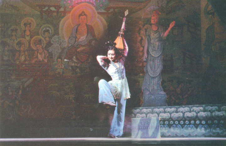 1980年,高金榮編纂了《敦煌舞教學(xué)大綱》,并于當(dāng)年招收了第一屆敦煌舞班學(xué)生。教學(xué)實(shí)踐中,她開創(chuàng)了包括呼吸、手姿、手臂、單腳形態(tài)和琵琶道具組合在內(nèi)的舞姿訓(xùn)練課,編導(dǎo)了《敦煌夢(mèng)幻》《極樂敦煌》等組舞以及教學(xué)劇目《千手觀音》《妙音反彈》《大飛天》《歡騰伎樂》《莫高女神》等,再一次“活化”了敦煌壁畫,形成了完備的敦煌舞教學(xué)體系。
