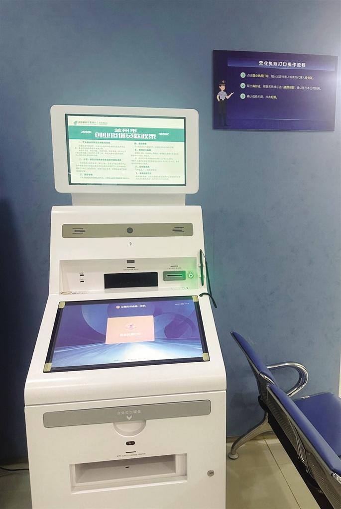 據(jù)了解,七里河區(qū)市場(chǎng)監(jiān)管局不斷深化“政銀合作”,積極會(huì)同中國(guó)郵政儲(chǔ)蓄銀行股份有限公司蘭州市七里河區(qū)支行,投放該自助一體機(jī)。企業(yè)網(wǎng)上申報(bào)材料核準(zhǔn)通過后,經(jīng)辦人或企業(yè)法定代表人只需憑借本人身份證,通過機(jī)器終端認(rèn)證,再按系統(tǒng)提示進(jìn)行操作,即可實(shí)現(xiàn)“秒”打營(yíng)業(yè)執(zhí)照,不僅營(yíng)造了“申請(qǐng)不見面、資料零提供、領(lǐng)證不等待”的企業(yè)開辦環(huán)境,且進(jìn)一步實(shí)現(xiàn)了“數(shù)據(jù)多跑路,群眾少跑腿,最多跑一次”的政務(wù)服務(wù)目標(biāo),切實(shí)實(shí)現(xiàn)了企業(yè)注冊(cè)登記信息化、智能化、便利化。