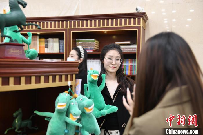 3月26日,甘肅蘭州,絲路旅游持續(xù)升溫,甘肅省博物館推出的文創(chuàng)產(chǎn)品“綠馬”惹游客“愛不釋手”,讓游客流連忘返。