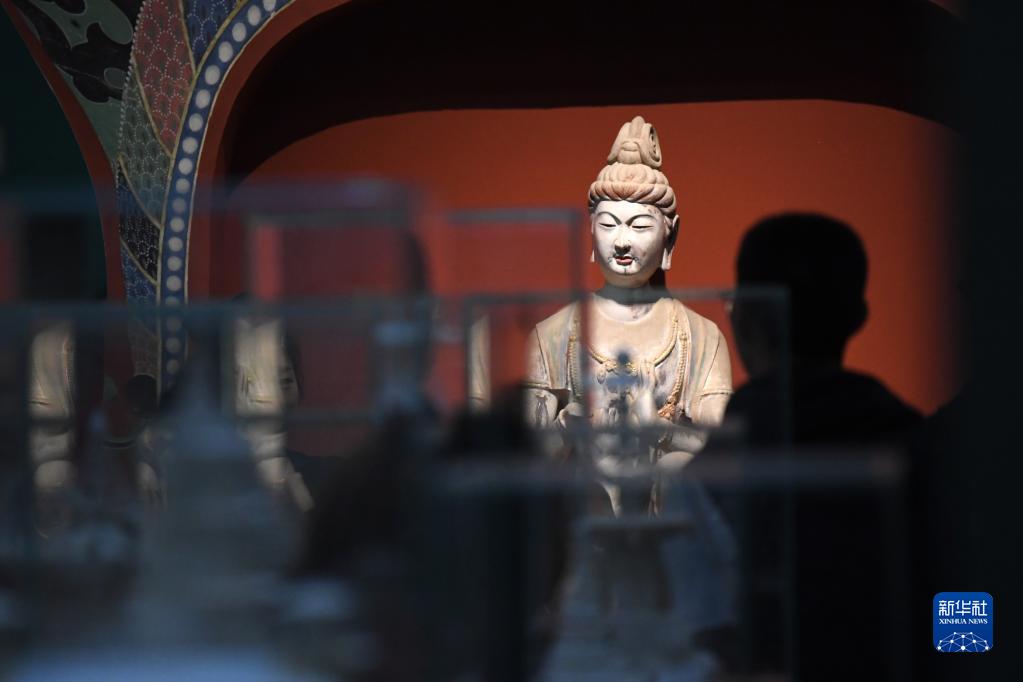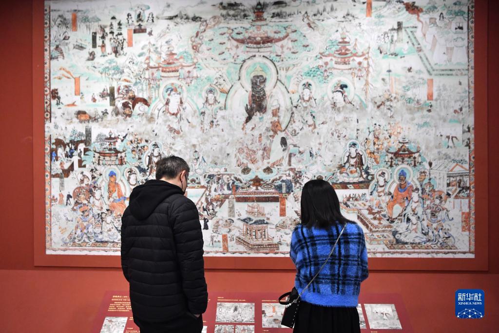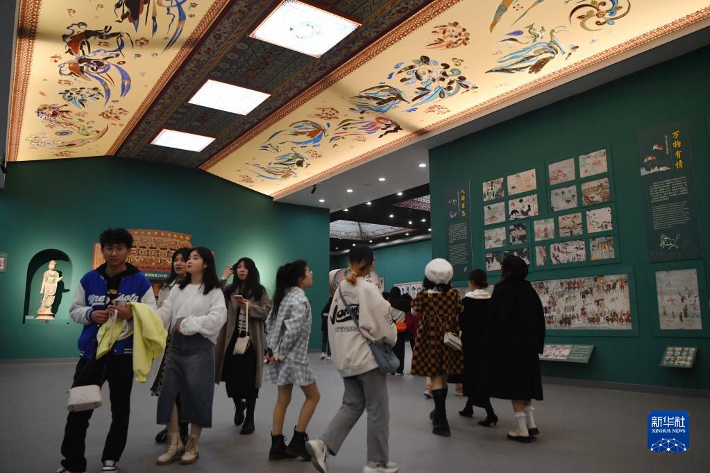 4月5日,觀眾在敦煌研究院蘭州分院敦煌藝術館參觀。新華社記者 陳斌 攝