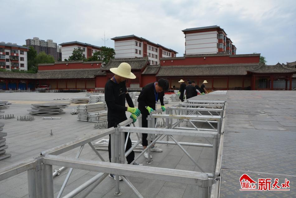 新天水訊【記者何慧娟 張彬霞】2023(癸卯)年公祭中華人文始祖伏羲大典將于6月22日舉行。日前,記者來到伏羲廟廣場看到,公祭伏羲大典文化豐碑矗立在藍(lán)天白云下,看起來雄渾壯麗,主舞臺搭建,旗桿、旗墩翻新等工作正有序開展,施工現(xiàn)場一派繁忙景象。