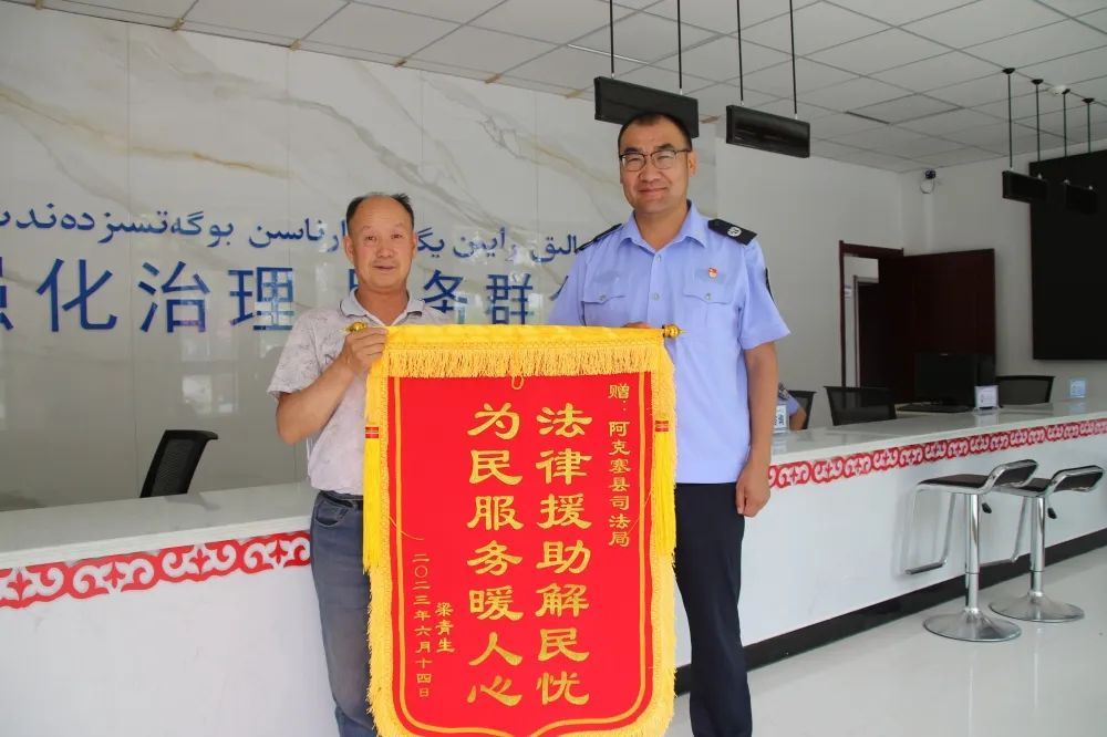 “謝謝你們,謝謝法律援助,感謝黨和政府。”受援人梁某邊說邊將印有“法律援助解民憂 為民服務(wù)暖人心”字樣的錦旗遞到酒泉市阿克塞縣司法局工作人員的手中,感謝在阿克塞縣司法局公共法律服務(wù)中心的幫助下,及時拿到了自己的勞動工資。據(jù)悉,梁某因生病需要治療,想到給某老板干活還未結(jié)清的工錢,于是梁某到公共法律服務(wù)中心咨詢法律援助事宜。工作人員了解梁某的情況后,考慮到梁某的情況符合法律援助相關(guān)條件,當(dāng)即指派酒泉紅柳律師事務(wù)所律師辦理此案,該案在律師的積極辦理下及時結(jié)案并勝訴,梁某如愿拿到了勞動報酬。