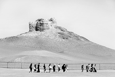 8月6日,游客在甘肅省敦煌市陽關(guān)景區(qū)游覽。新華社發(fā)