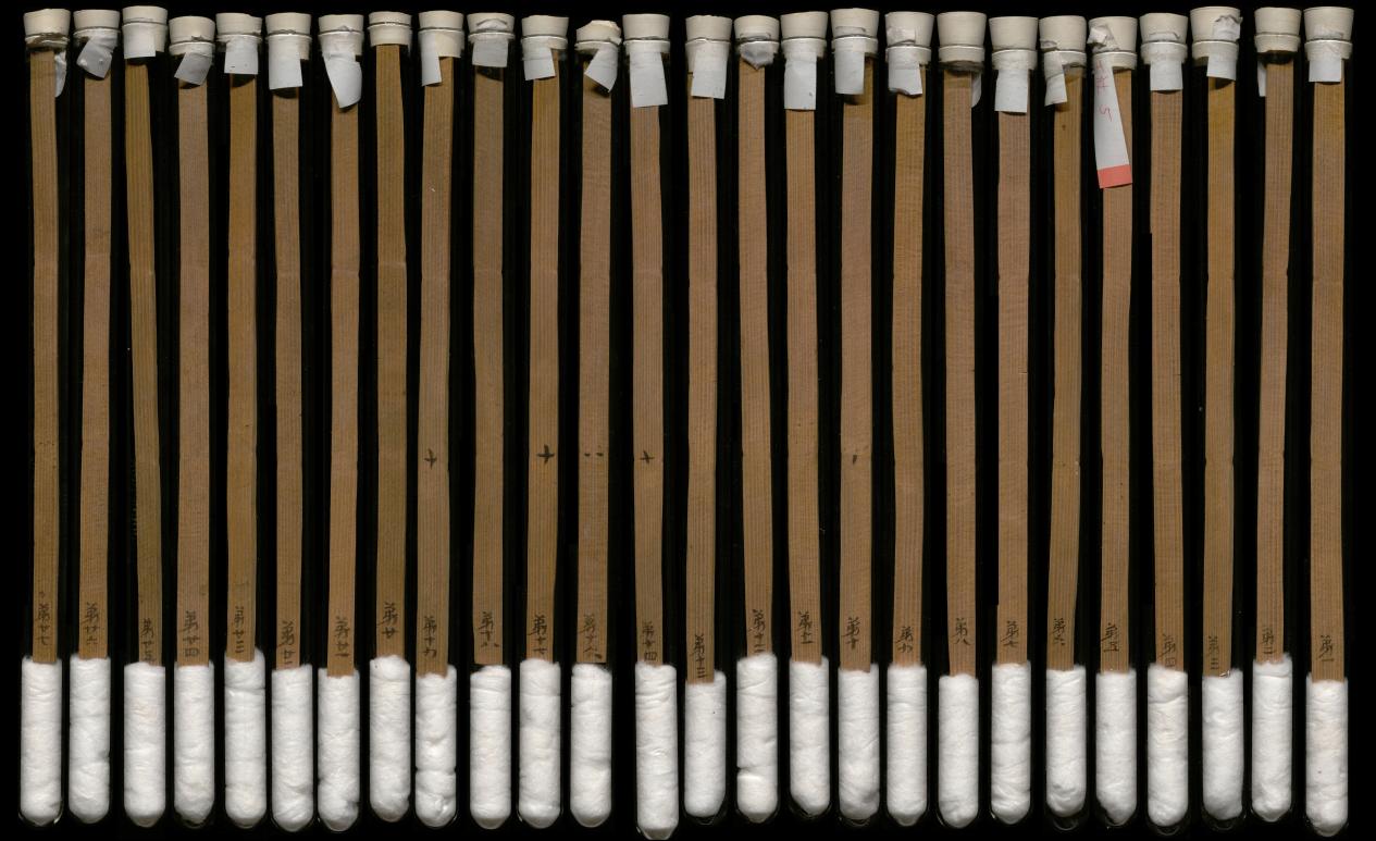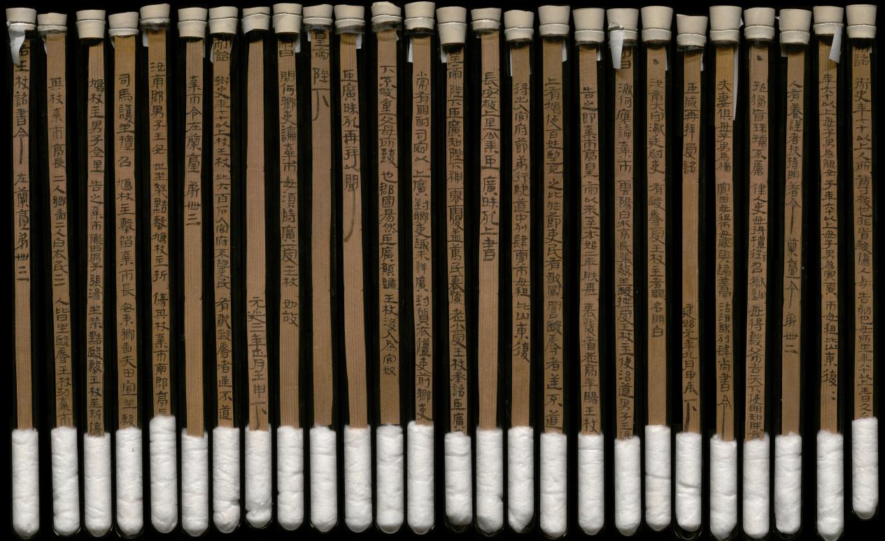 1959年,在武威市涼州區(qū)新華鄉(xiāng)磨嘴子第18號墓中,出土木簡10枚,出土時懸掛于一鳩杖之上。其內(nèi)容記載了東漢永平十五年(72年)幼伯受王杖事,并錄建始二年(前31年)九月“年七十受王杖”的詔書和和平元年(前28年)毆擊王杖主當棄市的令。由于簡上無編號,出土時次序已亂,史學界稱其為“王杖十簡”。簡長23.2-23.3厘米,寬1厘米,共有240字。松木削制、兩道編繩、先書后編、墨書隸體、字跡清晰。