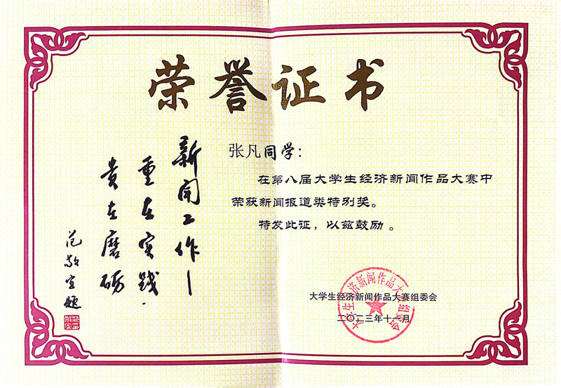 第八屆大學(xué)生經(jīng)濟新聞作品大賽獲獎作品截圖
