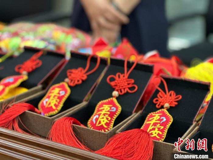 5月7日,“甘肅省2024年‘文化和自然遺產(chǎn)日’非遺宣傳展示展銷主會(huì)場系列活動(dòng)暨第十九屆慶陽香包民俗文化節(jié)”新聞發(fā)布會(huì)舉行。圖為發(fā)布會(huì)現(xiàn)場展示的香包制品。楊娜 攝