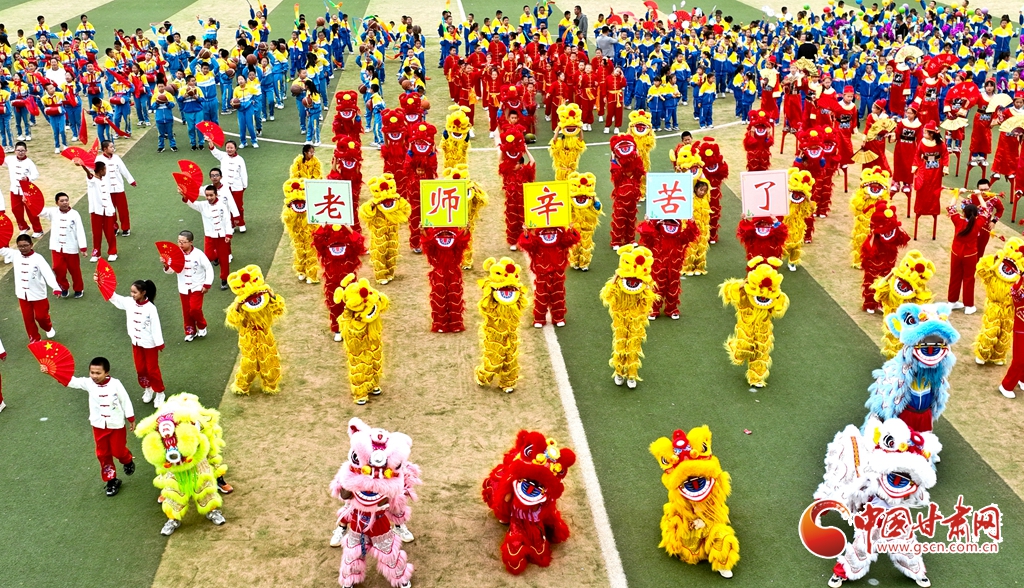 9月5日,在張掖市甘州區(qū)大成學(xué)校體育場上,舞龍、舞獅、踩高蹺、扇子舞、威風(fēng)鑼鼓、腰鼓、武術(shù)等38個(gè)社團(tuán)依次進(jìn)行成果展演,師生們在傳承中華民族的優(yōu)秀文化,探索向美而行的新路徑中,歡慶即將到來的第40個(gè)教師節(jié)。
