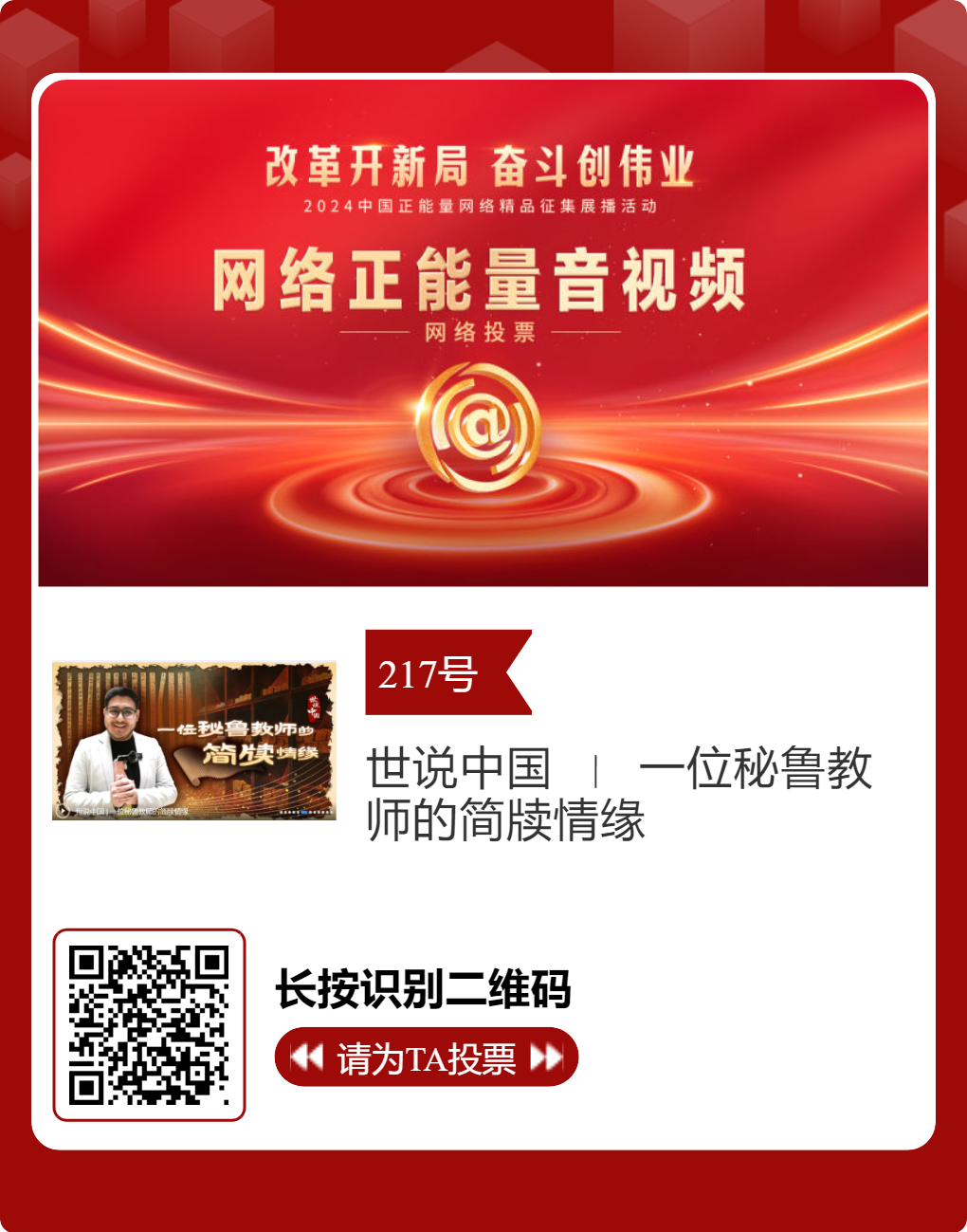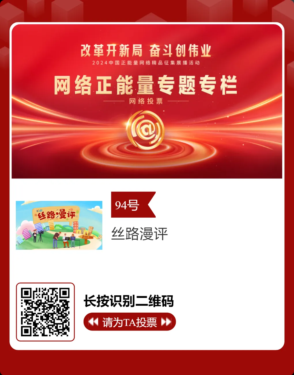 投票方式:點(diǎn)擊標(biāo)題或長按識別圖片中二維碼進(jìn)入投票鏈接