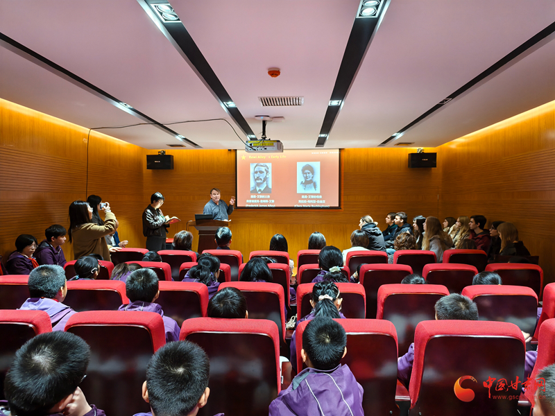 中國甘肅網(wǎng)10月24日訊(西北角·中國甘肅網(wǎng)記者 孫珩力)為積極響應(yīng)甘肅省中小學(xué)“百校結(jié)好”倡議,深化國際理解教育實(shí)踐,傳承紅色文化基因,弘揚(yáng)艾黎精神,10月23日下午,西北師范大學(xué)附屬小學(xué)組織六年級師生在路易·艾黎研究中心舉行了“追溯培黎歲月·續(xù)寫艾黎精神”國際理解教育主題活動。來自新西蘭、美國、南非、烏克蘭、巴基斯坦的外籍教師,白俄羅斯和法國的留學(xué)生20余人,及蘭煉二小校長受邀出席并觀摩了此次活動。