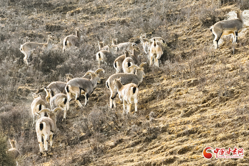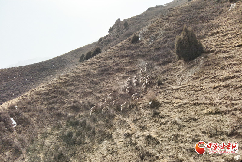 近日,民樂縣大河口自然保護站扁都口資源管護站人員于高海拔區(qū)域日常巡護時,邂逅一大群巖羊在山坡覓食、奔跑的珍貴場景,巖羊數量約50只。