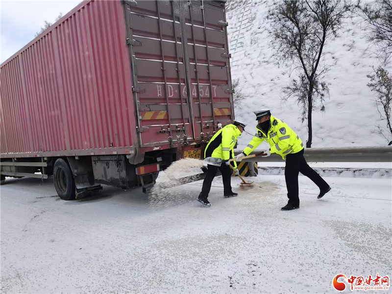 為應對降雪影響,蘭州公安交管部門科學調配警力,在城區(qū)主次干道、國省道沿線及重點積雪結冰路段布設執(zhí)勤點位。針對解放門立交橋等橋梁隧道、長大下坡關鍵點位,提前預置融雪劑,聯合市政養(yǎng)護部門開展“機械除雪+人工清掃”作業(yè),確保重點路段“見底露面”。