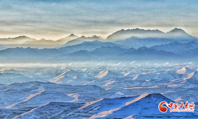 初冬時節(jié),位于張掖市民樂縣境內的祁連山脈巍峨群鋒被一場大雪妝點的銀裝素裹,分外妖嬈,儼然一幅千里冰封萬里雪飄的北國風光圖。