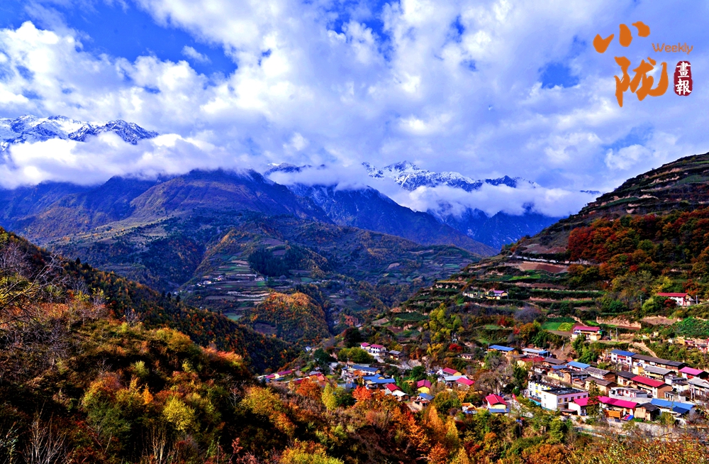 在溝谷深處,依山而建的寨房點綴在斑斕色彩之中。藍天白云、炊煙裊裊,門前屋后樹木成景……一切都是最貼近生活的模樣。