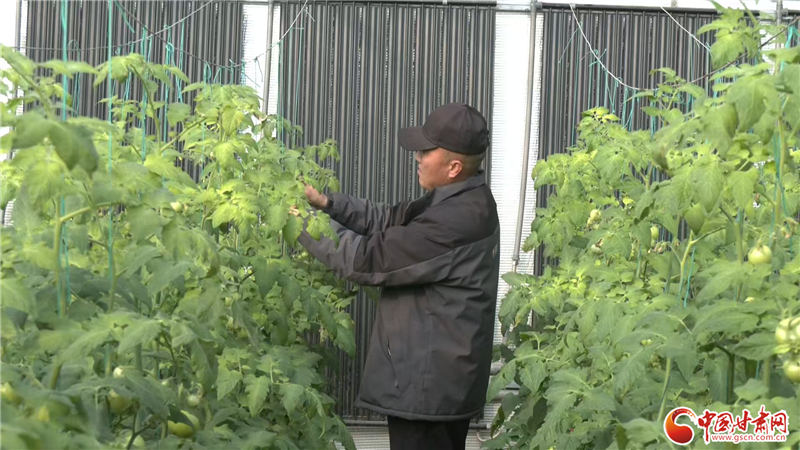 在日光溫室基地的西紅柿大棚里,承租戶李記信步履匆匆,在行架間來回穿梭,俯身查看果實長勢、抬手摘下成熟的西紅柿,動作嫻熟而麻利。談及近期蔬菜價格和收成,他的臉上瞬間綻開笑容,眉眼間滿是豐收的喜悅與踏實。