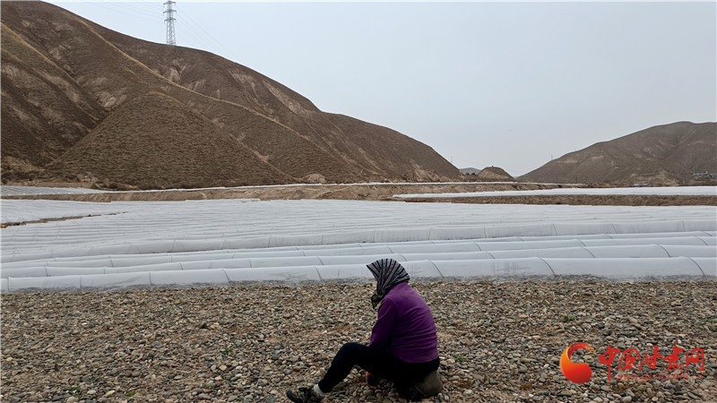 3月18日,城關區(qū)青白石街道水源村村民在沙石地種白蘭瓜