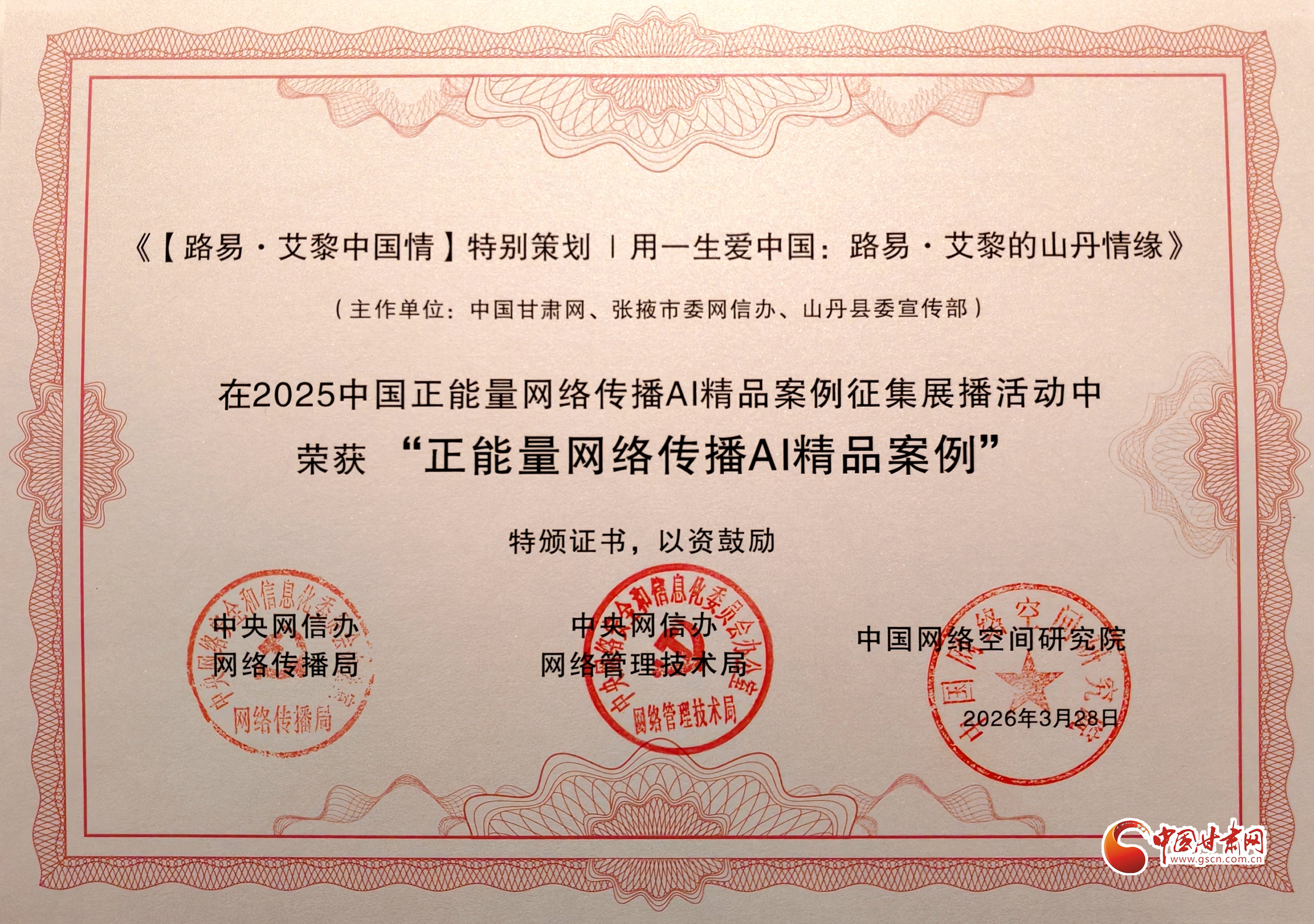 剛剛!中國甘肅網特別策劃《用一生愛中國:路易·艾黎的山丹情緣》榮獲2025中國正能量網絡傳播AI精品案例