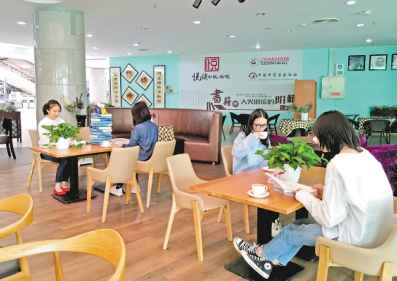 廣州中醫(yī)藥大學(xué)里的悅讀中醫(yī)書(shū)吧為同學(xué)們提供了舒適的閱讀氛圍。
