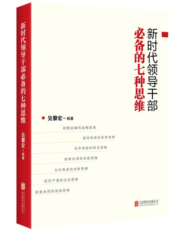 日前,北京聯(lián)合出版公司出版了《新時(shí)代領(lǐng)導(dǎo)干部必備的七種思維》一書。本書圍繞如何提高理論思維能力,對(duì)戰(zhàn)略思維、歷史思維、辯證思維、系統(tǒng)思維、創(chuàng)新思維、法治思維、底線思維的含義、功用和訓(xùn)練方法進(jìn)行了系統(tǒng)闡述。