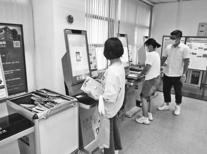 東莞市民在自助借閱機(jī)上辦理圖書(shū)借閱手續(xù)。