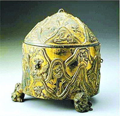 東漢銅鎏金山紋獸足樽,現藏于臺北故宮博物院 資料圖片