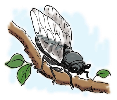 除去捉成蟬,還可摸黑兒去野外,在各種樹(shù)木或高粱、玉米等秸稈植物接近地面的部位,尋找剛從洞穴里鉆出來(lái)未脫殼的“知了猴兒”,我們叫“爬爬兒”。陰天下小雨的傍晚,“爬爬兒”出來(lái)較早,有時(shí)踅摸一袋煙工夫,就能捉好幾只。將其放在室內(nèi)的花草或木棍上,待第二天早晨變成羽翼豐滿、方頭褐身的知了,就可供玩耍了。新逮的蟬兒又是一種美食,油炸或烤熟,味道鮮美,香脆可口,營(yíng)養(yǎng)豐富,孩子們都搶著吃。(張峻屹)