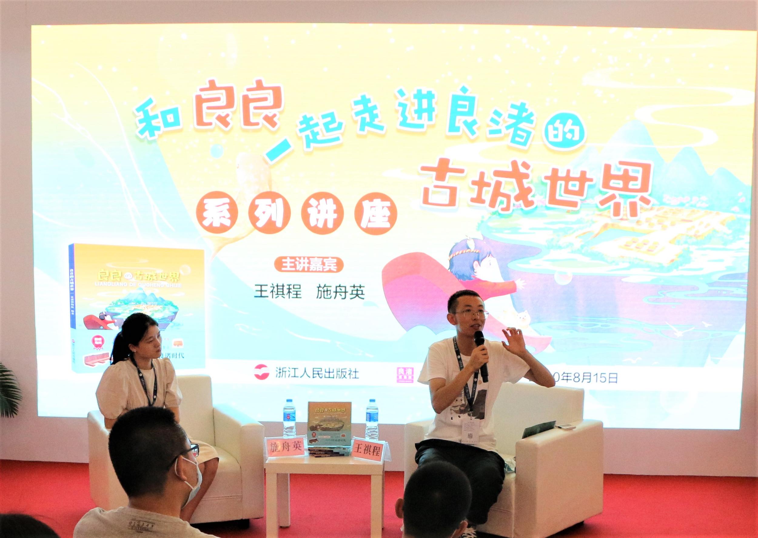 現(xiàn)場,王祺程與施舟英生動(dòng)地講述了良渚文化與良渚古城的概況,并分享了“良良”系列繪本背后的故事。