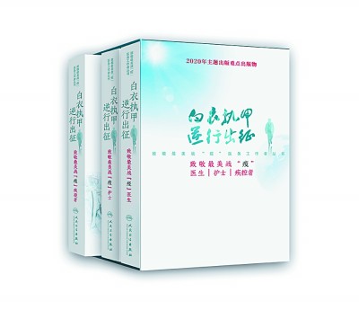 歷史不能忘卻,英雄應該銘記。記載他們的逆行,講述他們的故事,再現(xiàn)他們的壯舉,弘揚他們的精神,是出版界義不容辭的責任。在國家衛(wèi)生健康委員會、中宣部出版局及社會各界的大力支持和幫助下,人民衛(wèi)生出版社“白衣執(zhí)甲 逆行出征——致敬最美戰(zhàn)‘疫’醫(yī)務工作者”叢書,于2020年8月19日中國醫(yī)師節(jié)前夕出版了。這套叢書,內容從數(shù)千篇全國一線戰(zhàn)“疫”醫(yī)務工作者征文中精選輯錄而成。依書寫人的身份不同,分為《致敬最美戰(zhàn)“疫”醫(yī)生》《致敬最美戰(zhàn)“疫”護士》《致敬最美戰(zhàn)“疫”疾控者》三個分冊,共收錄300余篇文章。