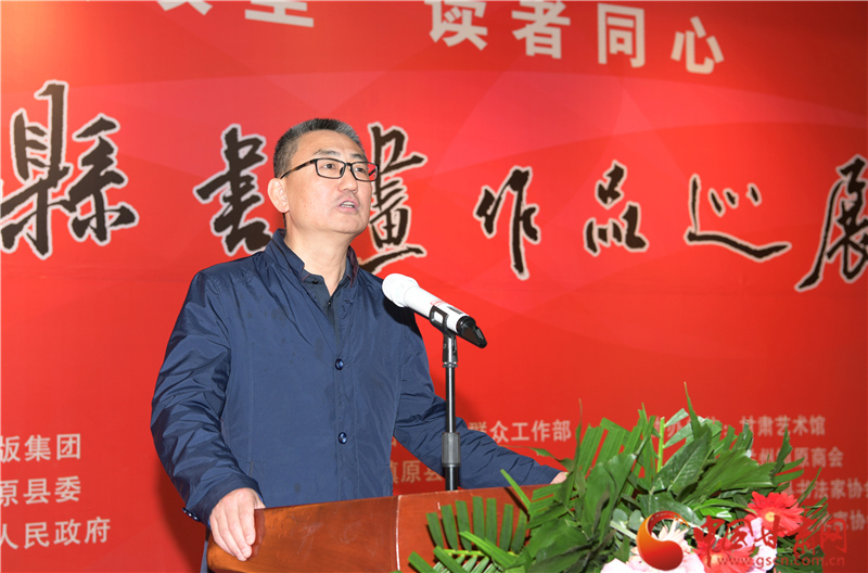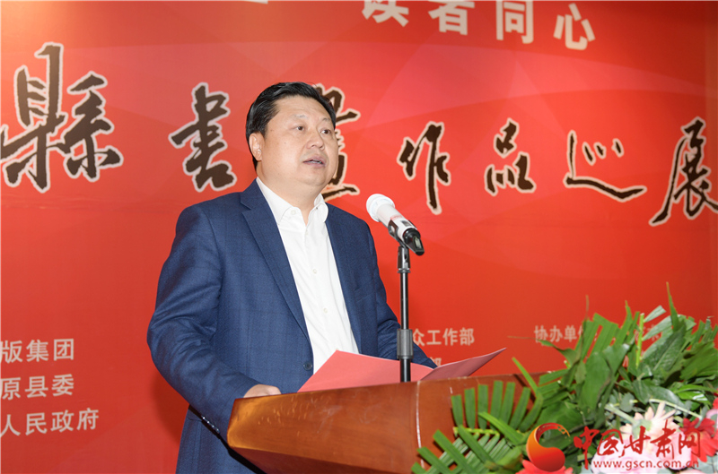劉永升在致辭中說,鎮(zhèn)原是中國書法之鄉(xiāng),讀者是甘肅文化名片,企縣因扶貧而結緣,因文化而牽手。自2017年定點幫扶鎮(zhèn)原以來,讀者出版集團著力實施了一批“看得見、摸得著、留得下、有成效”的好項目,探索出一條富有“讀者”特色的幫扶路子。特別是立足文化企業(yè)定位,堅持扶智扶志,通過開展勞動技能培訓、幫助改善教育條件、推介宣傳地方資源、建設“讀者鄉(xiāng)村文化驛站”等一系列卓有成效的工作,切實打好“文化扶貧”牌,既堅定了廣大群眾戰(zhàn)勝貧困的信心和決心,更激發(fā)了貧困群眾依靠雙手、勤勞致富的積極性、主動性。此次與鎮(zhèn)原縣聯(lián)合舉辦書畫巡展,是開展文化扶貧、助力書香社會建設的務實之舉,也是提升“文化鎮(zhèn)原”影響力、加快地方文化產業(yè)發(fā)展的積極行動,更是提高貧困群眾文化素質、振奮群眾精神風貌的重要舉措。