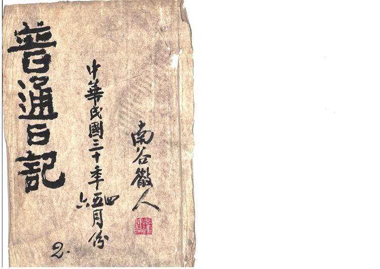 金城古玩城軒潤(rùn)堂主人馬先生,近日重金收購一冊(cè)裴建準(zhǔn)《普通日記》,行書寫本,雙頁折疊裝訂,凡66面。面長(zhǎng)31厘米,闊24厘米。每面十行字,行22、23、24字不等。封面題三行字:左上題“普通日記”四大字,下題阿拉伯?dāng)?shù)字“2”;中題“中華民國(guó)三十年四、五、六月份”;右題“南谷山人”,鈐“裴建準(zhǔn)印”白文印。何以稱《普通日記》呢?他是否還有其他《日記》待考。