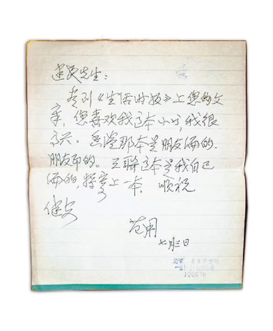 翻到最后,居然看到自己的名字,不會吧?打開,真是。一個僻地讀者數(shù)十年前的信函,范用先生竟然存留下來。認真讀讀,記憶喚醒,當年大膽與范先生通信的往事,浮上心頭。