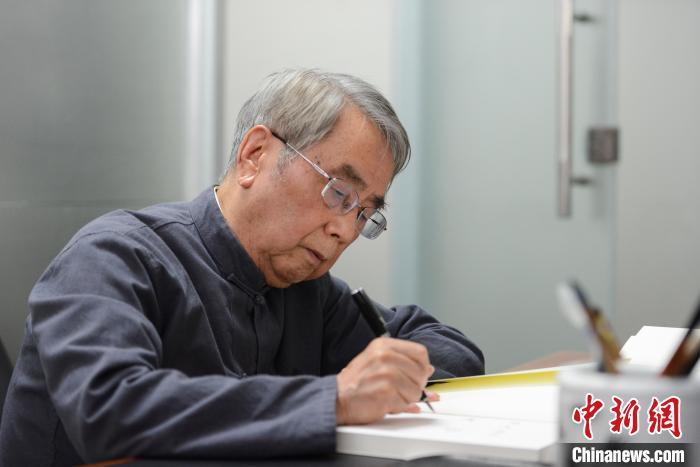 圖為翻譯家楊武能接受中新網記者專訪。何蓬磊 攝