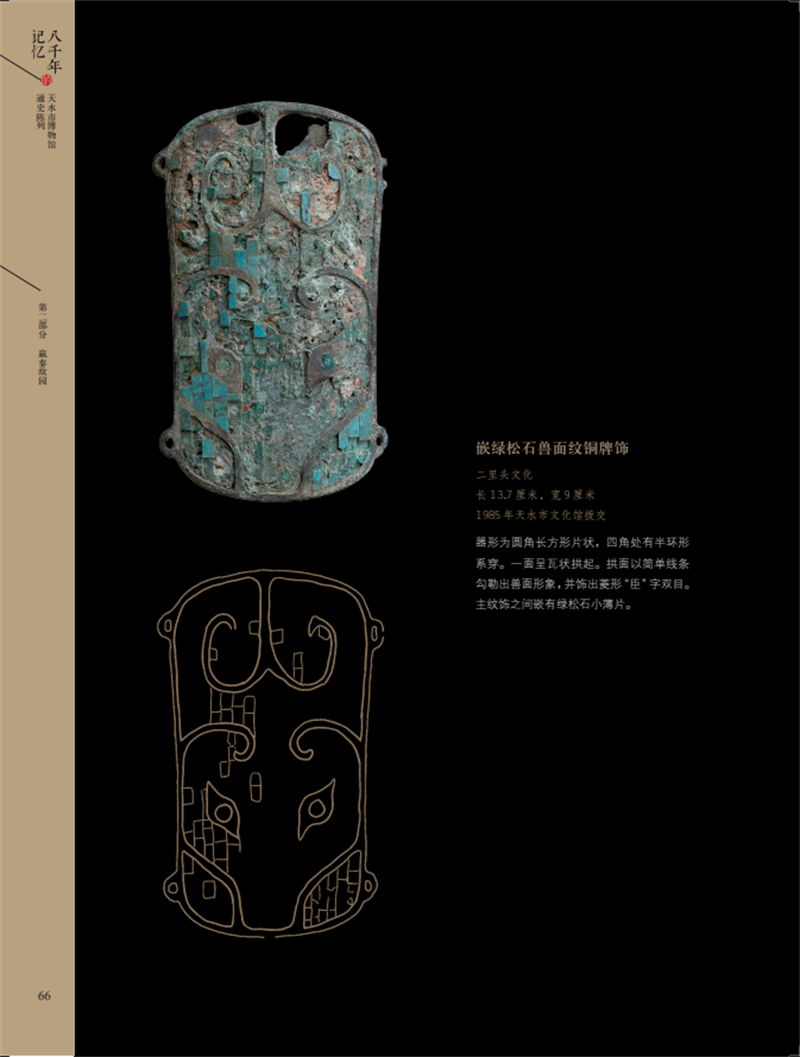 《八千年的記憶——天水市博物館通史陳列》文物圖錄一書在編輯出版過程中,凝聚了眾多工作人員的心血。天水市博物館學(xué)術(shù)研究部在文物的遴選確定、資料整理、編寫、校對方面做了大量的工作,文物保管部在文物照片拍攝、文物信息提供方面積極配合、全力協(xié)助,信息中心在展廳照片拍攝方面提供了幫助。本書中部分插圖,由甘肅省博物館、甘肅省文物考古研究所、麥積山石窟藝術(shù)研究所、張家川回族自治縣博物館友情提供。今由文物出版社正式出版,文物圖片精美、文字說明簡潔明快,希望更多的讀者通過此書認(rèn)識天水,也希望更多的人能夠因為此書親臨天水市博物館感受天水厚重的歷史文化。