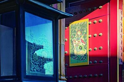 2019年春節(jié),故宮張燈結(jié)彩,在宮門上懸掛門神畫,歡迎全國(guó)游客來故宮里過大年。