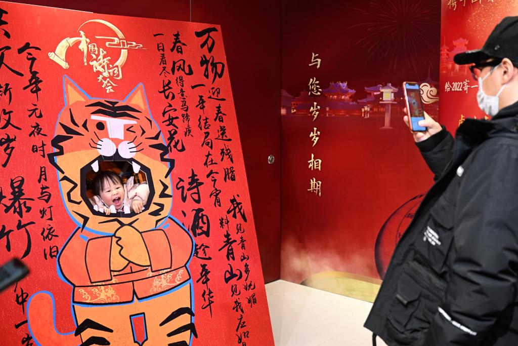 春節(jié)假期,作為文化節(jié)目《2022中國詩詞大會(huì)》的線下活動(dòng),詩詞市集在北京國貿(mào)商城舉行?;顒?dòng)邀請(qǐng)市民寫下一句詩,給2022年寄出一張?jiān)娫~明信片,帶動(dòng)詩歌熱潮,推動(dòng)詩詞文化走入百姓家。