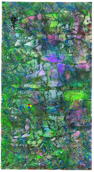徐冬冬認(rèn)為,二十四節(jié)氣歷史悠久,可追至上古時(shí)代,蘊(yùn)含著對(duì)天地萬(wàn)物生命起源的哲學(xué)認(rèn)知。中國(guó)抽象繪畫,畫的是生命本質(zhì)的生生滅滅。畫的是“空”,而不是“色”。他告訴記者,在創(chuàng)作這組畫時(shí),他會(huì)細(xì)致捕捉依次出現(xiàn)的時(shí)令、氣候、物候的變化,通過(guò)八識(shí)中的“眼、耳、鼻、舌、身、意”來(lái)感受大自然的氣息,然后用抽象的筆觸呈現(xiàn)在畫紙上。“我就像是一臺(tái)感應(yīng)器,每一個(gè)汗毛孔都在感受著天地的氣息。”徐冬冬說(shuō)。作畫的宣紙經(jīng)過(guò)特殊處理,也有了肌理和紋路,色彩濃烈的畫作仿佛有了生命,似乎在呼吸伸展。