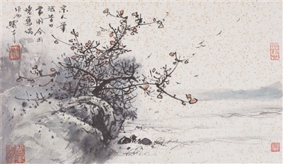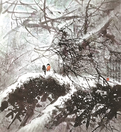 馮先生還和夫人在每年結婚紀念日時一起作畫,“我們去年過了綠寶石婚,結婚55周年。每到結婚紀念日,都是我們倆人畫一幅,畫一對小鳥。早在六七十年代最艱苦的時候就開始了,因為我夫人也是畫畫的,我們那時一起畫了一對小鳥在風雪里,那幅畫我現(xiàn)在還有。后來我們一直畫鳥,風景在不斷地變化,這和我們對生活的感受有很大的關系。”