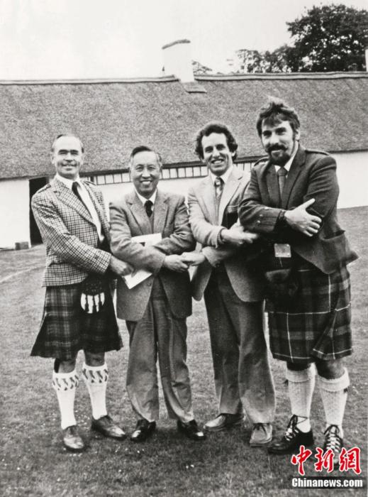 1982年7月,王佐良(左二)在蘇格蘭詩(shī)人彭斯的故鄉(xiāng)歐文城。王佐良是最早譯介彭斯的譯者之一。中新社發(fā) 受訪者供圖