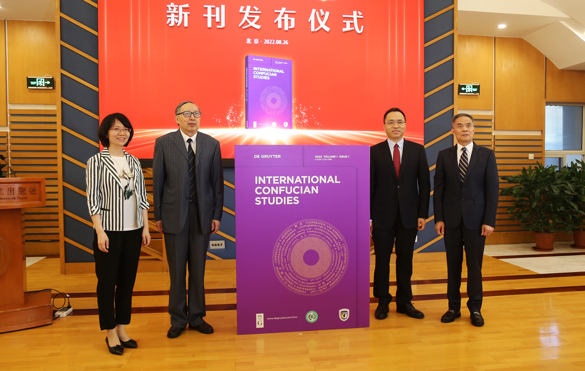 陳睿、陳來、楊丹、賈德永共同為《國(guó)際儒學(xué)》(英文版)新刊揭幕。(從左至右)
