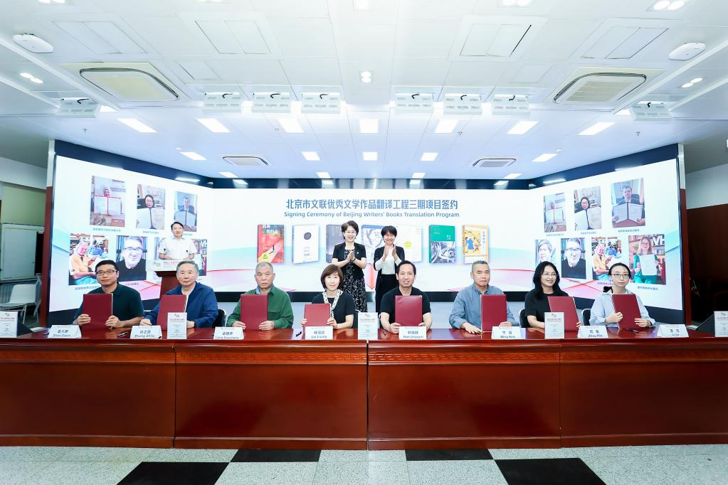 開幕式上,發(fā)布了北京市文聯(lián)優(yōu)秀文學(xué)作品翻譯工程圖書成果,周曉楓《星魚》意大利文版和英文版、葉廣芩《花貓三丫上房了》法文版、星河《北京小子》阿文版集中亮相。梁曉聲《我和我的命》、張之路《吉祥時光》、格非《月落荒寺》、畢淑敏《預(yù)約死亡》、肖復(fù)興《我們的老院》、張悅?cè)弧段已鸸舛鴣怼?、寧肯《蒙面之城?部作品簽署版權(quán)輸出協(xié)議,這些優(yōu)秀文學(xué)作品即將“走出去”與海外讀者見面。